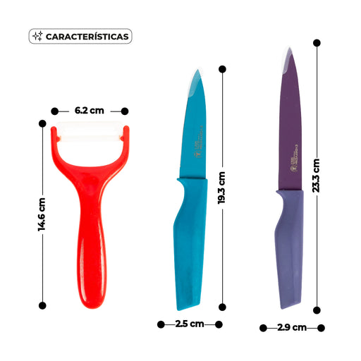 Juego De Cuchillos Queen Sense Acero Inoxidable 3 Pzs