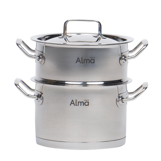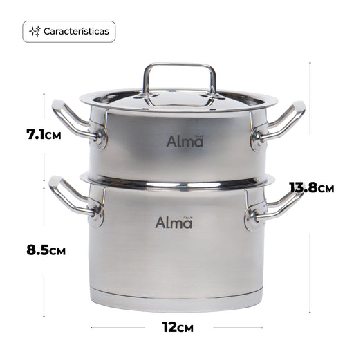 Set Mini Ollas Acero Inoxidable Doble Alma Vaporera 12CM