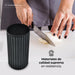 - Diseño que Ahorra Espacio: Su forma cilíndrica y compacta maximiza el espacio en tu encimera, organizando una gran cantidad de cuchillos en una pequeña superficie